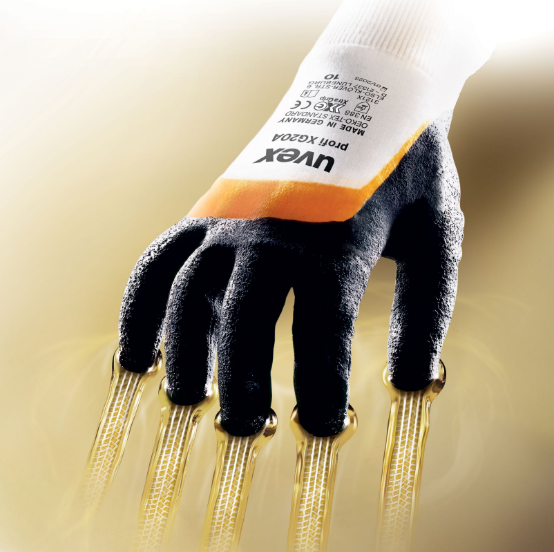 uvex Xtra Grip技术应用于精选的uvex安全手套,以防机械风险或化学品风险——所有都是“德国制造”。