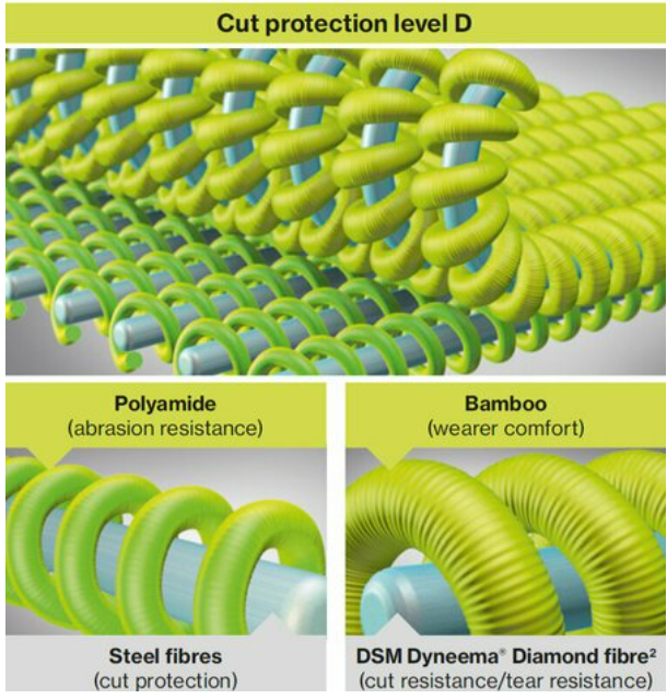✔ 安全性更高(根据EN 388:2016的切割保护等级D:4 X 4 1 D)